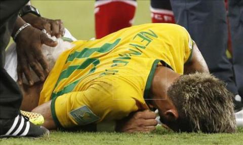 Neymar resultó lesionado en el minuto 86 del encuentro que su selección disputó en Fortaleza contra Colombia, de los cuartos de final del Mundial de Brasil, tras sufrir una entrada por detrás de Camilo Zúñiga.