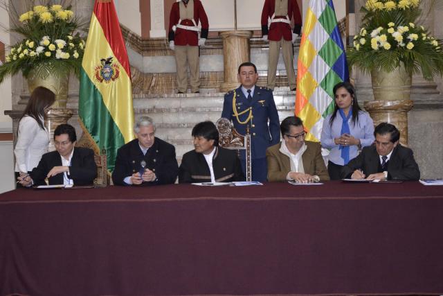La firma de contrato se realizó la mañana de este lunes en Palacio de Gobierno, entre autoridades de las empresas estales y la presencia del presidente, Evo Morales y el vicepresidente, Álvaro García.
