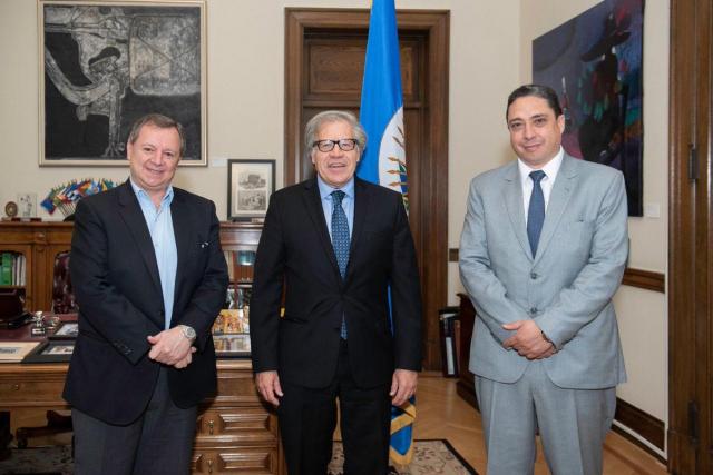 El ministro de Justicia, Héctor Arce, se reunió hoy con el Secretario General de la Organización de Estados Americanos (OEA), Luis Almagro, a quien le compartió los avances de las reformas a la justicia en Bolivia y la Ley de Abreviación Procesal Penal.