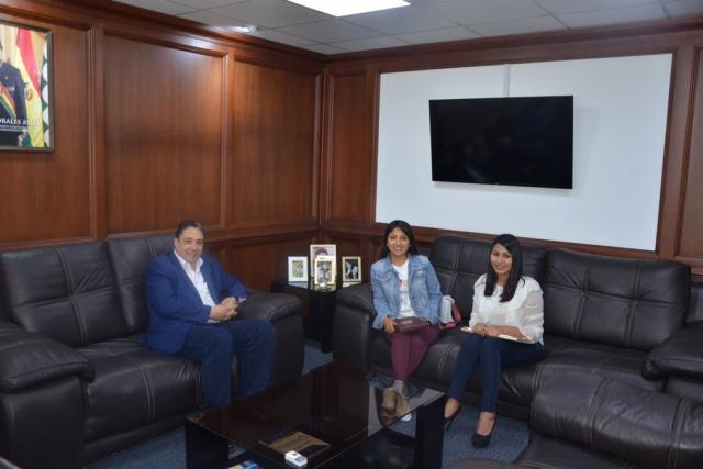 Ministro de Justicia dialoga con Evaliz, la hija de Evo, sobre los logros del Gobierno