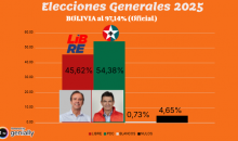Segunda vuelta: Santa Cruz es el sexto departamento en culminar el cómputo oficial y el total supera el 97%; mira el avanceOctubre 21 A más del 97% de avance, Rodrigo Paz (PDC) ya alcanza el 54,42% de los... |