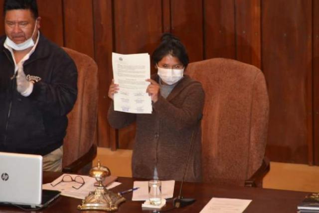 Después de que la presidenta del Estado, Jeanine Añez, observara la Ley de Postergación de las Elecciones, fue la presidenta de la Asamblea Legislativa Plurinacional (ALP), Eva Copa, quien promulgó la norma, que establece que los comicios serán, como plazo máximo, en agosto.