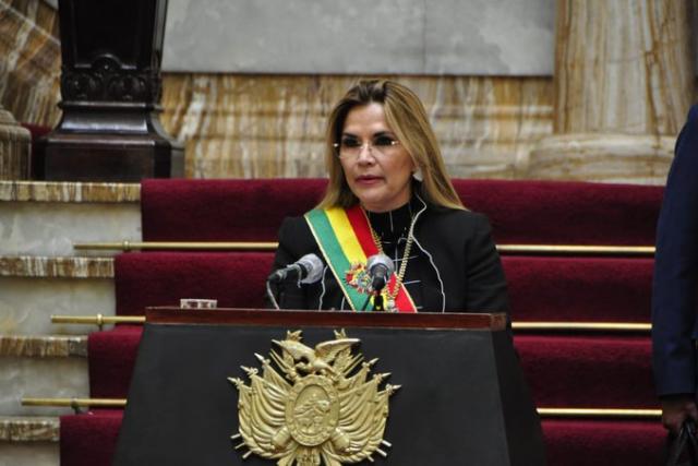 La presidenta transitoria del Estado, Jeanine Añez, durante su discurso por el día de la independencia del país, mandó un duro mensaje al Tribunal Supremo Electoral (TSE).