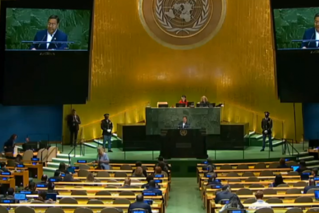 En su intervención ante la Asamblea General de las Naciones Unidas, el presidente Luis Arce también planteó este jueves un diagnóstico crítico sobre las nuevas formas de intervención internacional y presentó seis propuestas destinadas, dijo, a reconfigurar el orden multilateral y a poner en el centro la reparación histórica, la paz y la sostenibilidad.