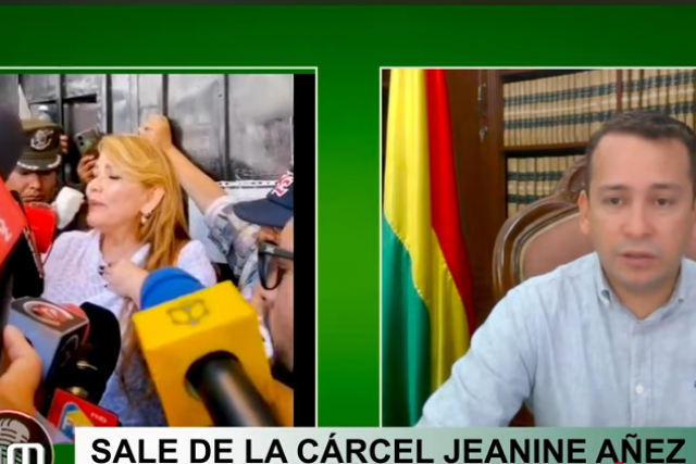 Incluso, Saucedo cortó la charla para hacer notar al periodista Jhon Arandia que Añez estaba saliendo en libertad y espero por más de 15 minutos para retomar la entrevista, después de escuchar el discurso completo que la expresidenta dio en puertas del penal.
