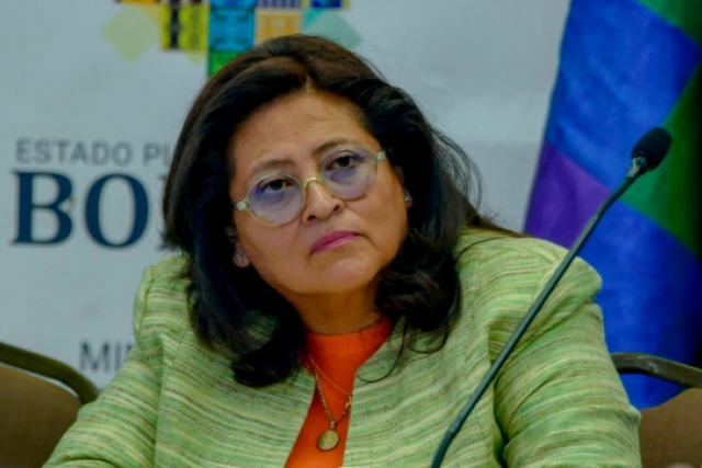 La ministra de Salud, Marcela Flores, en conferencia de prensa.
