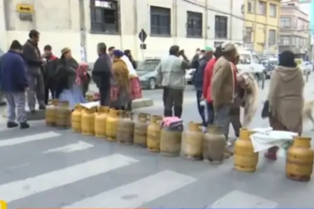 Este miércoles, ciudadanos salieron a bloquear algunas zonas de las ciudades de La Paz y El Alto con sus garrafas de gas en demanda de un normal abastecimiento del Gas Licuado de Petróleo (GLP).
