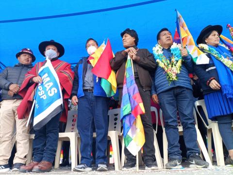El Presidente del Estado, Luis Arce, acompañado por el líder del MAS, Evo Morales, encabezaron el acto de inicio de la marcha, que pretende llegar a la ciudad de La Paz el próximo lunes 29 de noviembre.