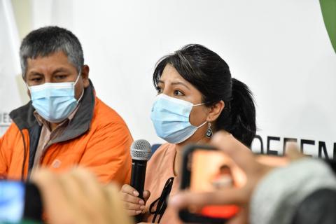 En conferencia de prensa, la defensora del Pueblo, Nadia Cruz, explicó que según diversas versiones, el joven escapaba del punto de confrontación, en la plaza 10 de Noviembre, cuando habría sufrido una caída abrupta, ocasionando que se atragante con un bolo de coca.