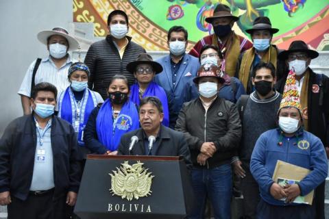 “Advertimos que las organizaciones sociales, el pueblo boliviano, el bloque social popular va a defender la democracia, va a defender la Constitución Política del Estado, va a defender al Gobierno legítimo, al Gobierno constitucional", afirmó el Presidente en Ejercicio.
