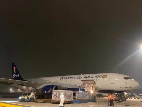 “Despegó desde Beijing, China, una nave de nuestra BoA trayendo 500.000 vacunas Sinopharm para seguir con nuestro Plan de Vacunación Masiva. También trae jeringas y pruebas de antígeno nasal. Esperamos su arribo a Cochabamba mañana domingo a Hrs 15:00”, publicó el presidente del Estado, Luis Arce Catacora, en su cuenta de Twitter.