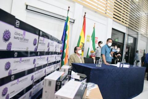 "Contentos de recibir estas primeras 40.000 (pruebas) que van a ser distribuidas prioritariamente en el departamento de Santa Cruz y La Paz. Y vamos a recibir 1.668.000 nuevos test más adelante, hasta el 10 de enero", informó el mandatario.