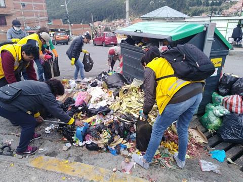 Algunos vecinos impiden el ingreso de los camiones de basura al relleno sanitario de Alpacoma, después de que se produjera el deslizamiento de una celda y la caída de residuos sólidos y lixiviados.