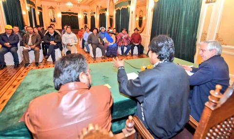 La Conalcam celebró hoy una reunión de reactivación de su vía orgánica con la presencia del presidente Morales, el vicepresidente y el viceministro Alfredo Rada.