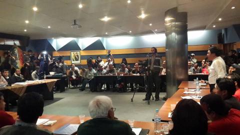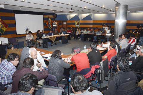 El ministro de la Presidencia, Juan Ramón Quintana, informó sobre la instalación de las mesas de desarrollo productivo, desarrollo social; salud y educación, infraestructura caminera, medio ambiente, minería y una mesa que tratará la liberación de cuatro detenidos en la cárcel de San Pedro.
