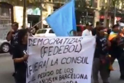 “El pueblo unido, jamás será vencido”, fue el estribillo con el que compatriotas instalaron el piquete de huelga de hambre en inmediaciones del Consulado de Bolivia en Barcelona hoy por la mañana.
