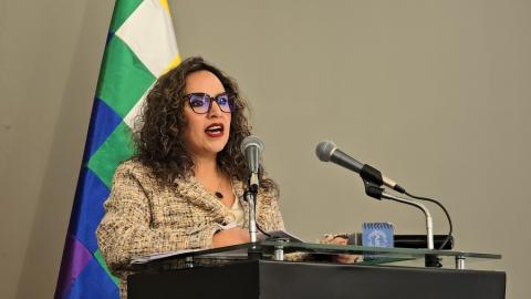 “Quiere que le vaya mal a nuestro país, porque es lo que pretende. Si ven el eslogan de su candidatura, en banners de la reunión de entre cuatro personas, dice salvar a Bolivia, porque se plantea como el salvador de Bolivia”, aseguró la ministra de la Presidencia, María Nela Prada.