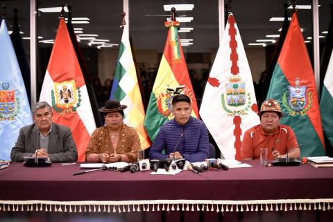 El presidente Luis Arce presidió, ayer, martes, la reunión con ministros de Estado, representantes de la Central Obrera Boliviana (COB), del Pacto de Unidad y de otras organizaciones sociales en Casa Grande del Pueblo, donde, precisamente, se evaluó la situación económica y los temas de provisión de dólares y carburantes.