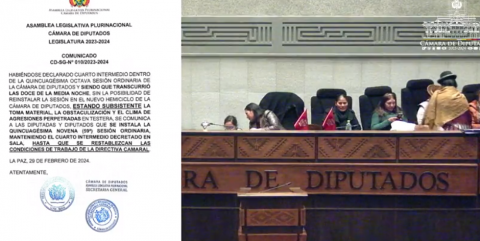 “En primera instancia pidieron que se lleve a cabo las elecciones judiciales, hecho que se llevó a cabo, en segunda instancia, se pidió el análisis de los proyectos de ley números 073 y 075, pedidos que ocultan la verdadera intención de los opositores que es conformar una nueva directiva” denunció el presidente de la Cámara de Diputados, Isreal Huaytari.