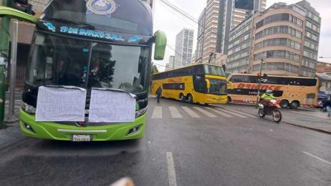 Utilizando sus buses, los transportistas bloquearon parte de la avenida Mariscal Santa Cruz y el Obelisco, con lo que se interrumpió el tráfico vehicular. Los dirigentes advirtieron paralizar la circulación hasta que se habiliten las carreteras.