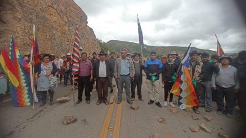 “Aquí estamos las organizaciones sociales, nos estamos encontrando en Caracollo para mostrar el repudio ante el bloqueo organizado por los grupos radicales minoritarios que están buscando generar un daño económico y perjudicar al departamento, a nuestro carnaval y anata andino”, señaló uno de los voceros del Pacto de Unidad orureño.