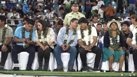 El Presidente del Estado y el Jefe del MAS participaron de la clausura y entrega de premios a los ganadores de los Juegos Estudiantiles Plurinacionales Regional Trópico de Cochabamba.