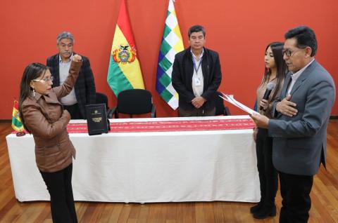 Mamani Lajura sume el cargo en lugar de Sandra Cruz Nina. La mañana de este jueves también se presentó al nuevo Director General de Educación Superior Universitaria, Pedro Daniel Angulo Aranda, quien fue designado en lugar de Mario Fuentes Terán.