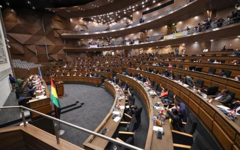 Los ministros de Gobierno, Eduardo del Castillo; de Obras Públicas, Edgar Montaño, y de Economía, Marcelo Montenegro; junto a otras autoridades relacionadas con aeropuertos, ofrecieron una conferencia de prensa desde Casa Grande del Pueblo para informar del avance de las investigaciones y de las decisiones asumidas por instrucción del presidente Luis Arce.
