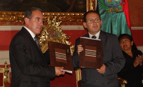 El alcalde Omar Rocha explicó que un primer componente del convenio autoriza a la empresa 'Mi Teleférico' al uso irrestricto de todos los espacios municipales para el emplazamiento de las estaciones que necesitan las cuatro nuevas líneas, más una compartida con la ciudad de El Alto.