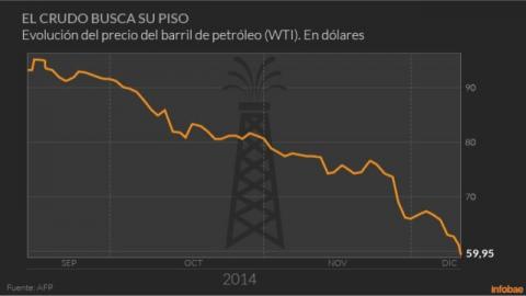 El "light sweet crude" (WTI) para entrega en enero cerró a 59,95 dólares, algo sin precedentes desde julio de 2009. El Brent, terminó en 63,68 dólares. Hay abundante oferta y perspectivas de poca demanda.