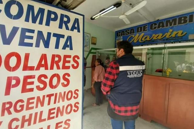 El Viceministerio de Defensa de los Derechos del Usuario y Consumidor, en coordinación con la Fuerza Especial de Lucha contra el Crimen (FELCC), desarrolló este martes, operativos en casas de cambio de la ciudad de Tarija por denuncias de agio y especulación del dólar. Tras la acción directa y un proceso previo de investigación, se arrestó a tres personas.