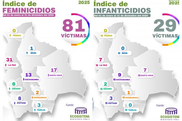 Bolivia cerró el 2025 con 81 casos de Feminicidio y 29 de Infanticidio
